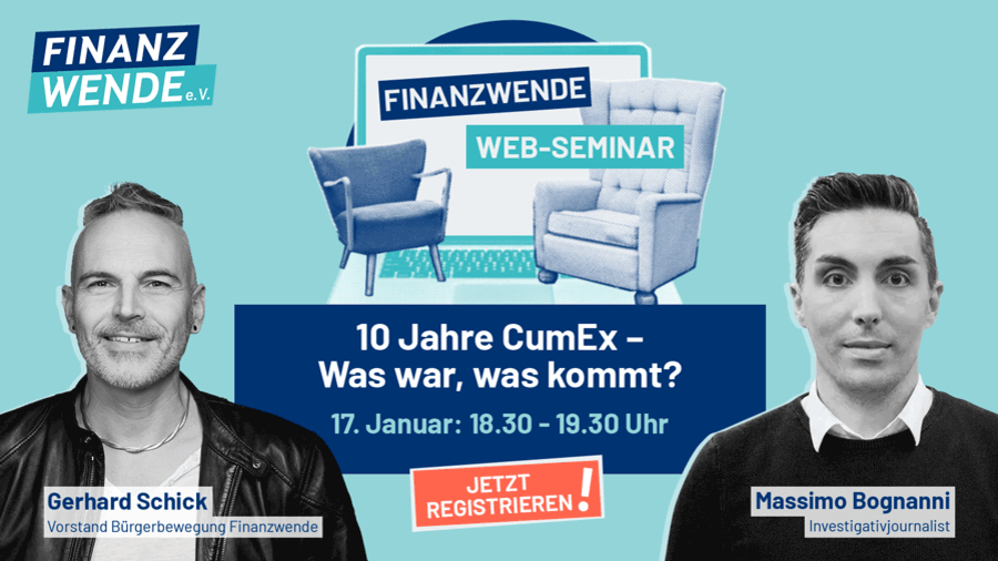 Einladung zum kostenlosen Web-Seminar von Finanzwende e.V. mit Massimo Bognanni und Gerhard Schick.