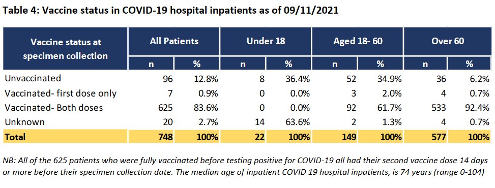 Ein Beispiel aus dem Ausland: Laut den offiziellen Angaben der Gesundheitsbehörde von Wales waren von allen hospitalisierten COVID-19-Patienten zum 9.11.2021 83,6% doppelt geimpft: